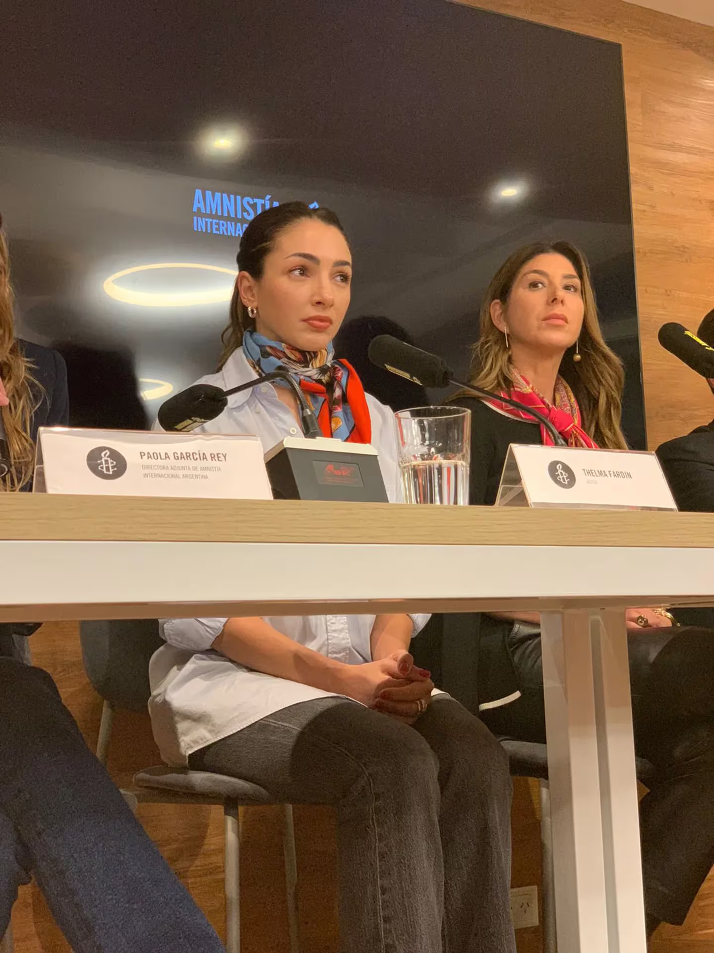 La conferencia había empezado con la palabra de Paola García Rey, directora adjunta de Amnistía internacional, los abogados de la actriz, Carla Andrade Junqueira y Martín Arias Duval, quienes detallaron los pormenores de la decisión que tomó la Justicia brasileña y explicaron el recorrido del caso.