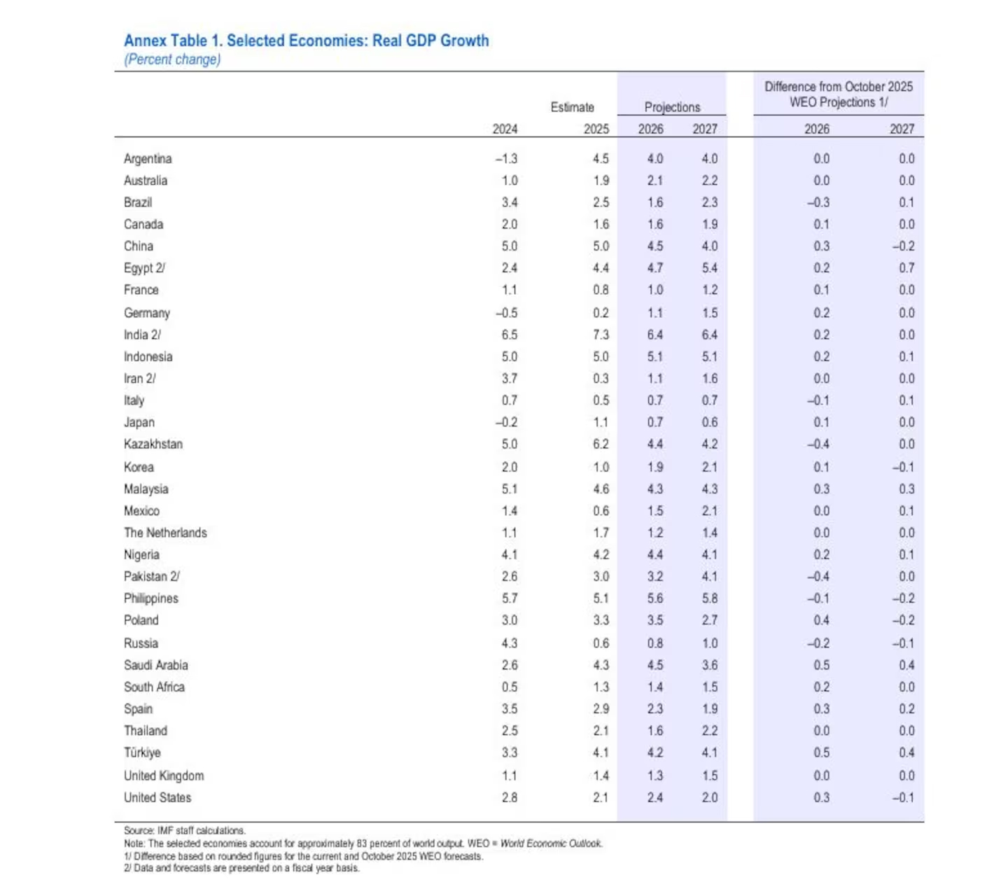 En cuanto al crecimiento global, el reporte mejoró levemente la estimación del PBI mundial desde su previsión de octubre y ahora espera un alza de 3,3% en 2026 y un 3,2% en 2027.