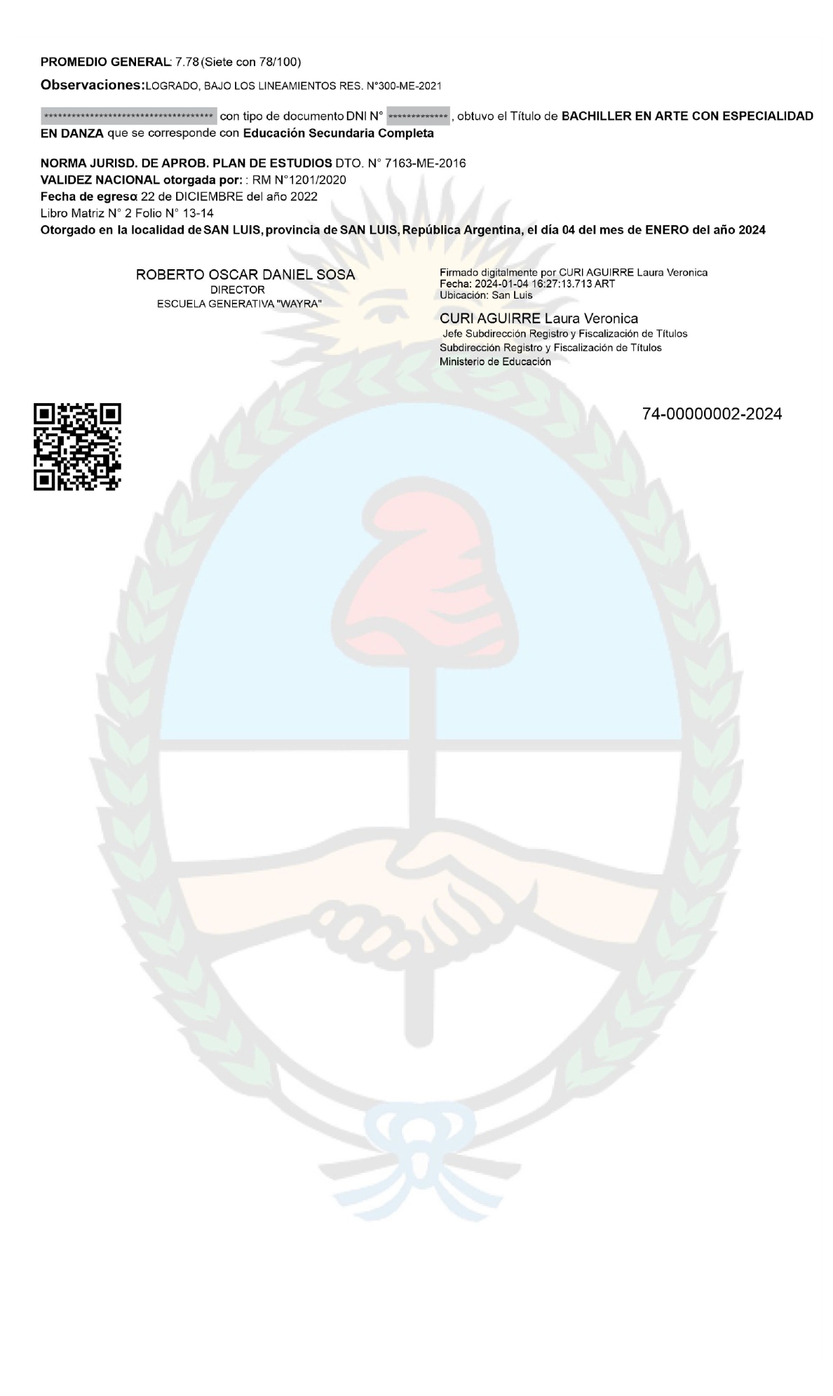 A partir del 1° de noviembre de 2023 el ministerio de Educación de la Nación implementó la emisión de títulos en forma digital, lo que se realizará en todo el territorio nacional a través de la Resolución 440/2023 del CFE. La provincia de San Luis ya logró emitir el primer título digital secundario.