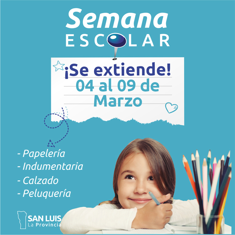 La buena recepción, por parte de familias de la provincia, de ‘Semana Escolar’, determinó que esta iniciativa se extendiera del 4 al 9 de marzo, lo que permitirá aprovechar las promociones, ofertas y descuentos en las compras de útiles, ropa y calzado escolar y en peluquería.