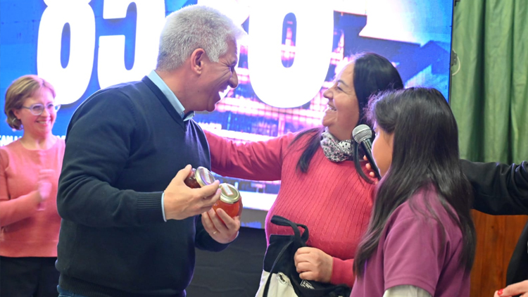 También desde La Punilla, Inés Montoneros y Agustina Acevedo, dueñas de un emprendimiento familiar llamado ‘Dulce Inés’, producen variedades de dulces, encurtidos y berenjenas al escabeche. Como muestra de gratitud, le regalaron al Gobernador un frasco de dulce de manzana y otro zapallo en almíbar.