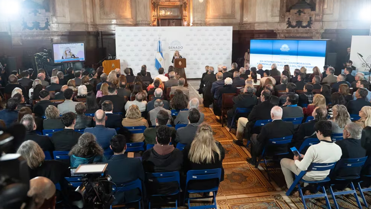 Quien primero hizo uso de la palabra fue la directoria del observatorio de Derechos Humanos de la Cámara alta y ex diputada peronista, Claudia Rucci, hija del ex jefe de la CGT José Ignacio Rucci. La funcionaria agradeció a Villarruel y recordó que el acto va en línea con la iniciativa que desde el año de 2017 se realiza a instancias de la Organización de las Naciones Unidas (ONU).