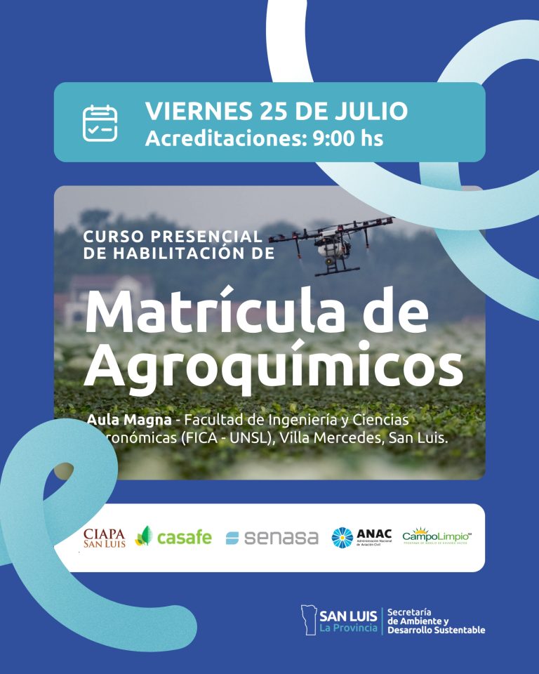 Se culminará con una evaluación. La modalidad será presencial y la participación es obligatoria para obtener o renovar la matrícula habilitante, requisito indispensable para el ejercicio responsable de las actividades relacionadas con el uso de productos fitosanitarios. Esta propuesta forma parte de las políticas públicas impulsadas por la cartera ambiental, orientadas a la sostenibilidad, la producción consciente y el cuidado del entorno natural. El objetivo es promover el correcto manejo de insumos agrícolas y fomentar la formación continua del sector.