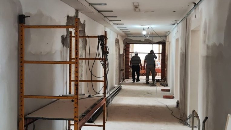 La dirección de Obras de Arquitectura y Viviendas precisó que las tareas progresan según lo planificado, con trabajos simultáneos que incluyen revoques finos y gruesos, retiro de instalaciones obsoletas y montaje de nueva infraestructura. En paralelo, avanzan con instalaciones eléctricas, de detección de incendios y de señales débiles en el entretecho, además de la construcción de tabiques divisorios, cielorrasos de Durlock y mampostería interior. También instalan cañerías sanitarias, equipos exteriores de aire acondicionado y colocan revestimientos cerámicos en pisos y paredes de los sanitarios.