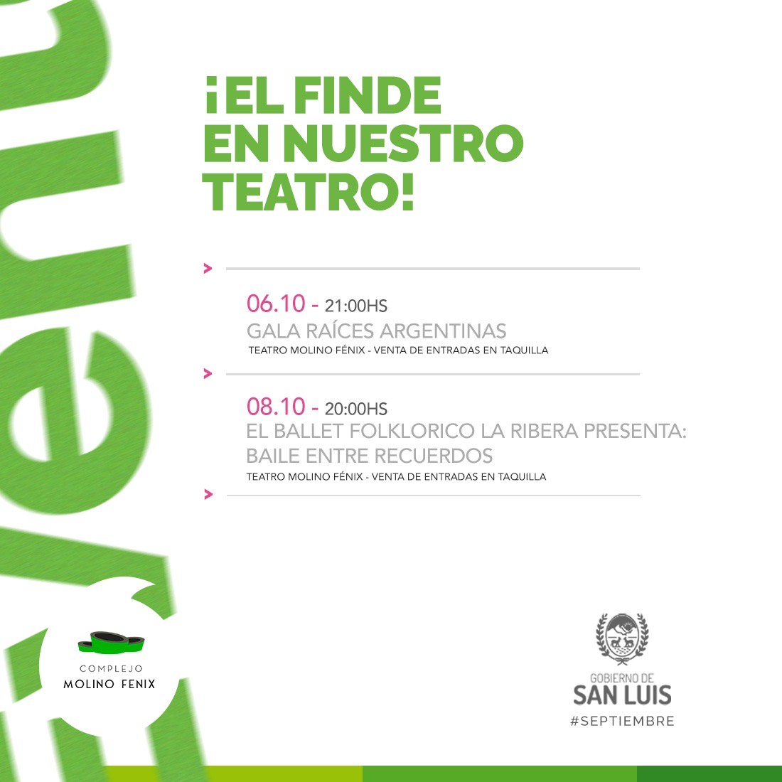 El Gobierno de San Luis, a través del Molino Fénix, presentan este fin de semana dos eventos para la familia de la danza folclórica.