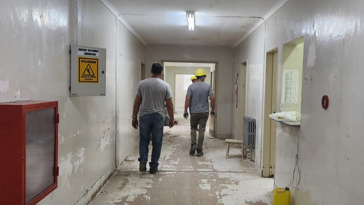 Empezaron con extracción de revoques, pisos y cielorrasos en el sector de quirófanos, mientras que en la Unidad de Terapia Intensiva trabajan en el traslado de equipamientos. Es la primera de tres intervenciones que realizarán en el primer piso.