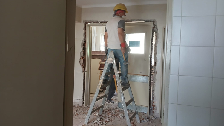 La intervención inició con tareas de demolición, extracción de revoques, pisos y cielorrasos, además del retiro de carpinterías. Los trabajos fueron supervisados por funcionarios de los ministerios de Salud y Hacienda e Infraestructura Pública, además del representante técnico de MC Servicios SRL, la empresa adjudicataria.