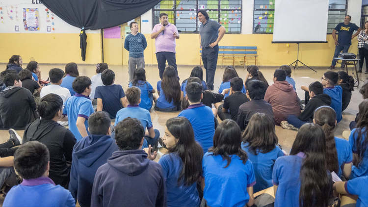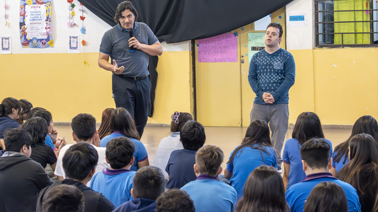 Luis Giraudo durante la charla sobre discapacidad a los alumnos del CE N°10’Ramiro Podetti’.