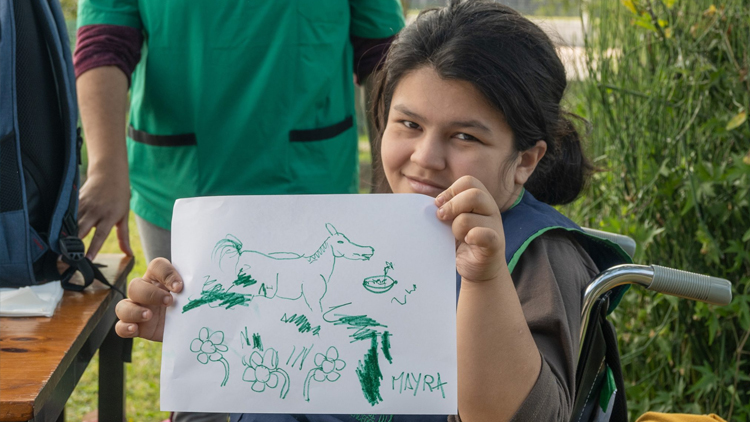 Antes de despedirse, los alumnos recibieron hojas y lápices para plasmar lo vivido. Aunque el entusiasmo ya se sentía en los rostros. Una niña, con ayuda de su orientador, fue la única que decidió expresarlo en papel: dibujó un hermoso caballo, reflejando con ternura la conexión que había logrado en tan poco tiempo.