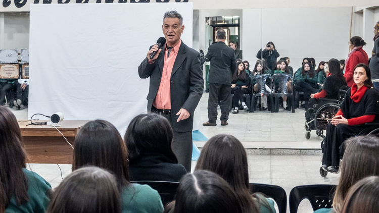 El espacio para la charla se dio en el Instituto Nacional de Informática (INDI) que fue mucho más que una simple exposición. Tanto Arneli Winter como Marcelo Scrimaglia, protagonistas con historias de vida impactantes compartieron sus experiencias sobre la discapacidad adquirida, que dejó una huella profunda en los alumnos, docentes y autoridades presentes.