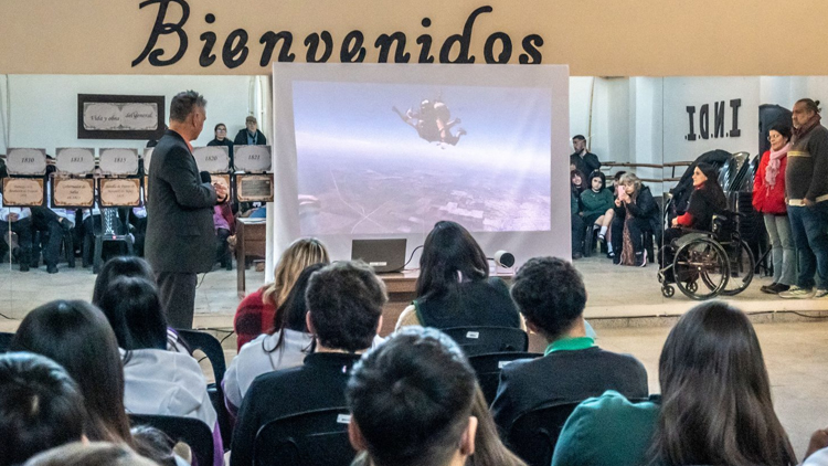 La charla fue presentada por Fernando Bazán, representante de la secretaria de Discapacidad, también contó con la presencia de Graciela Giglio, asesora pedagógica, y todos los estudiantes del secundario junto a sus profesores.